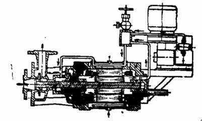 為了達到上述回轉窯的運轉目的,利用單冷卻回路的機組并借助活塞泵或隔膜活塞計量泵往轉子室沖入清潔液體,其結構如圖: